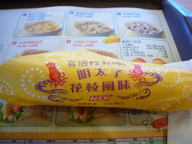 最近肯德基的新品廣告---明太子雞肉卷在電視上強力播送